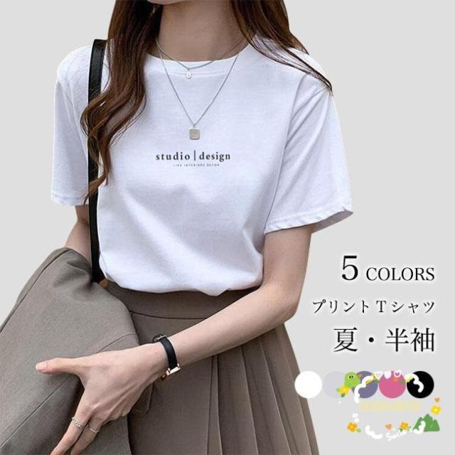 半袖Tシャツ レトロ レディース 夏 Tシャツ サラサラ プリントTシャツ 英字プリント おしゃれ サマーTシャツ 半袖 夏Tシャツ クルーネック ゆったり シンプル プルオーバー トップス 薄手 ブラック ホワイト バラ色 ブルー ベージュ
