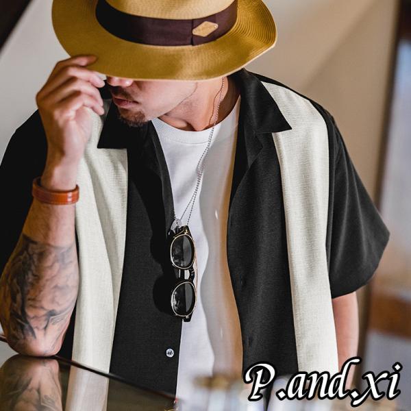 アロハシャツ メンズ 半袖 キューバシャツ 切り替え リネン風 開襟シャツ オープンカラーシャツ カジュアルシャツ かりゆしウェア リゾート 大きいサイズ 夏服