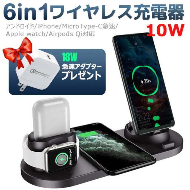 ワイヤレス充電器 ワイヤレス 充電器 6in1 充電スタンド 15W出力 Qi急速充電 アンドロイド ワイヤレスチャージャー 充電スタンド 6台同時充電