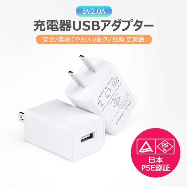 充電器 usbアダプター usbチャージャー コンセント 5V2A USB充電用ACアダプター ACアダプタースマホ充電器高速 iPhone13 Pro Max対応 日本PSE認証済み