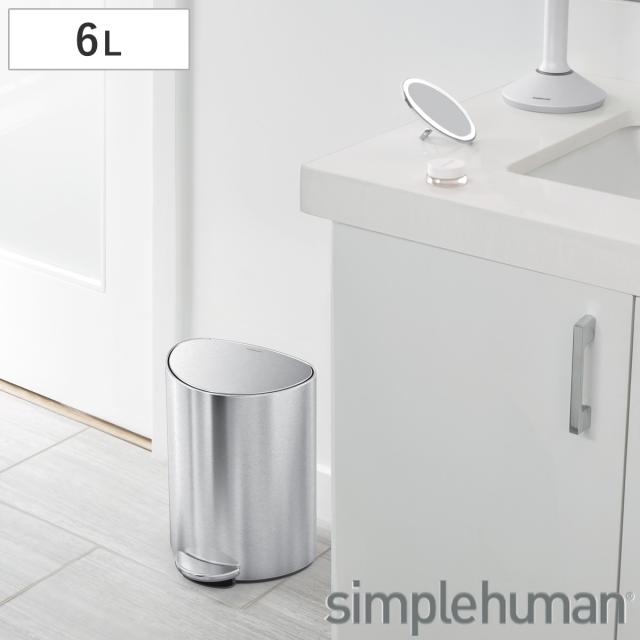 ゴミ箱 6L simplehuman 正規品 セミラウンドステップカン ペダル式 ホワイト ( ごみ箱 6リットル シンプルヒューマン ふた付き スリム 半円 省スペース ステンレス スタイリッシュ ゴミ袋 収納 インナーペール付 )