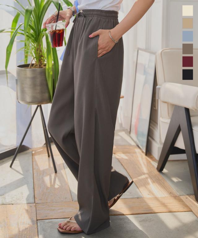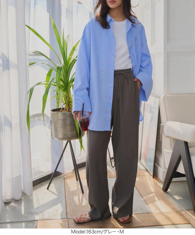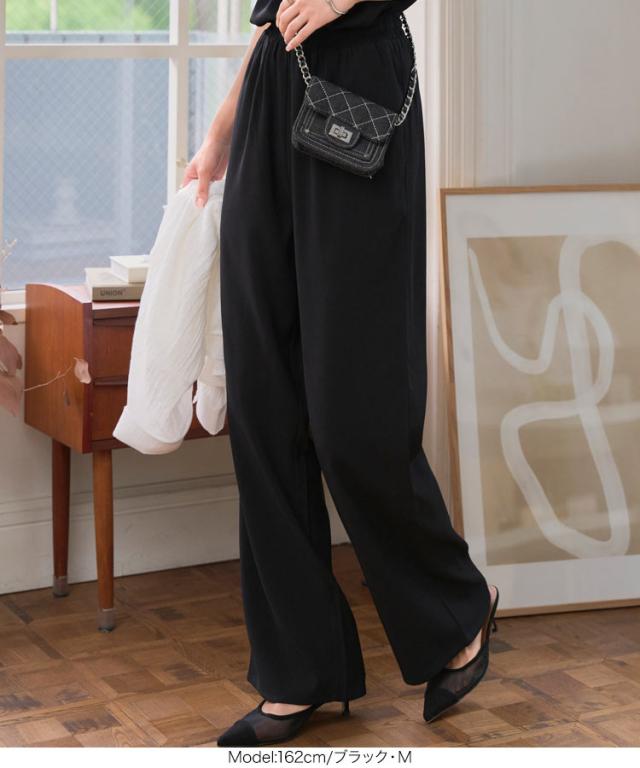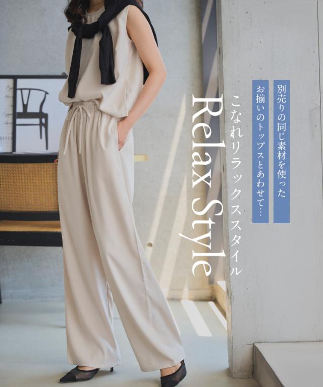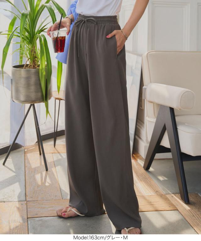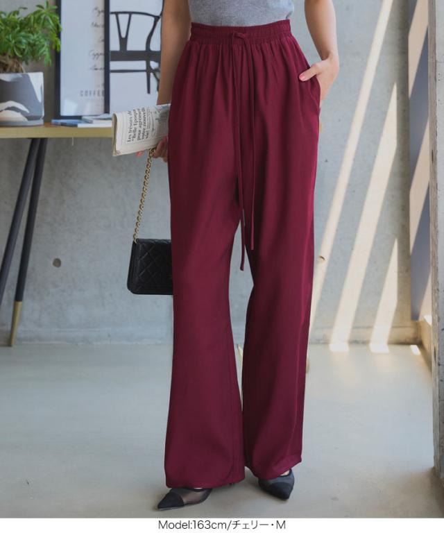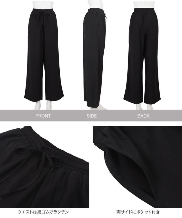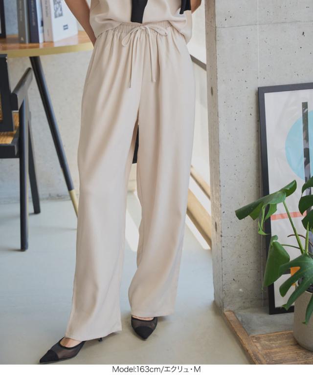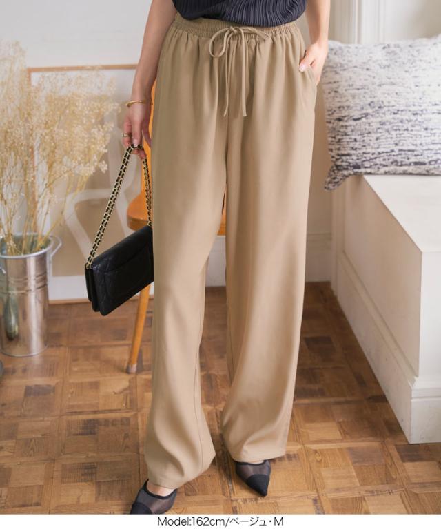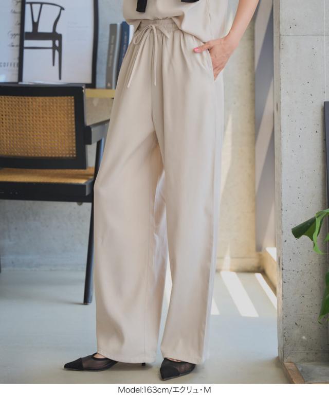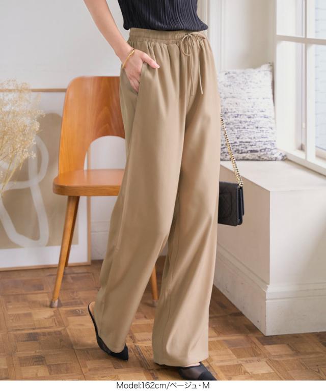 ウエストリボンリラックスワイドパンツ M4264 入荷済 レディース ズボン ゆったり らくちん ウエストゴム 低身長 高身長 きれいめ 20代 30代 40代 ラクチン 楽ちん ストレート キレイめ オフィス 家着 旅行 飛行機 ツイル プチ トー