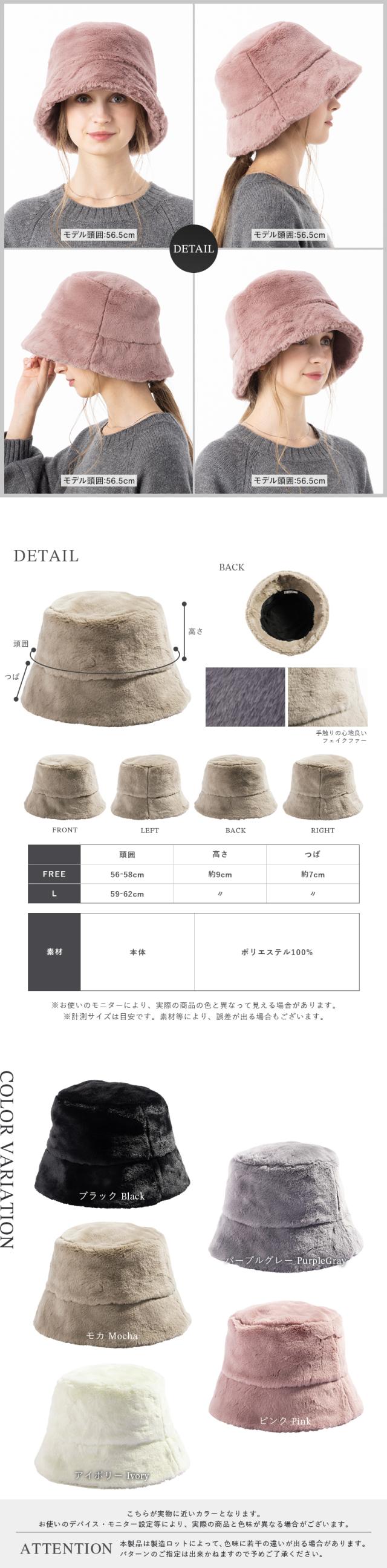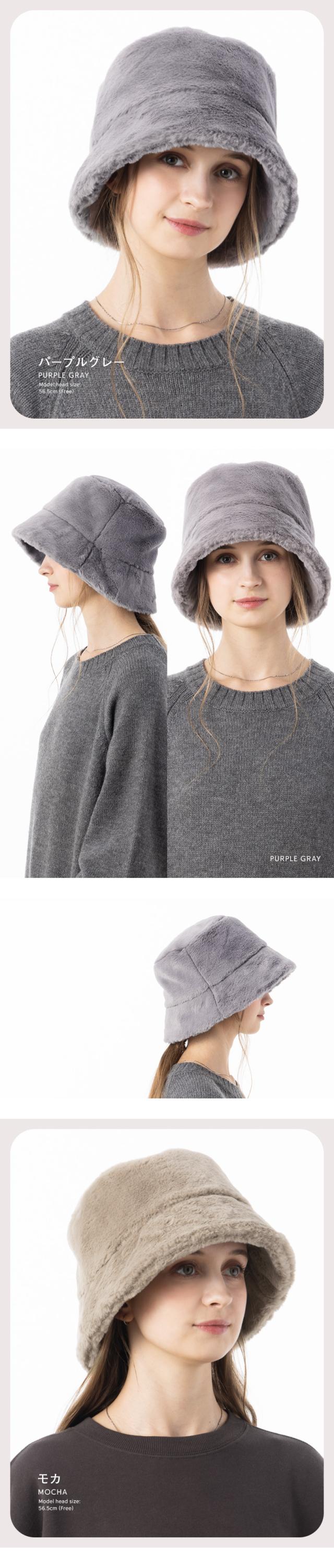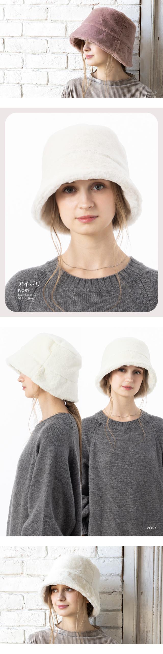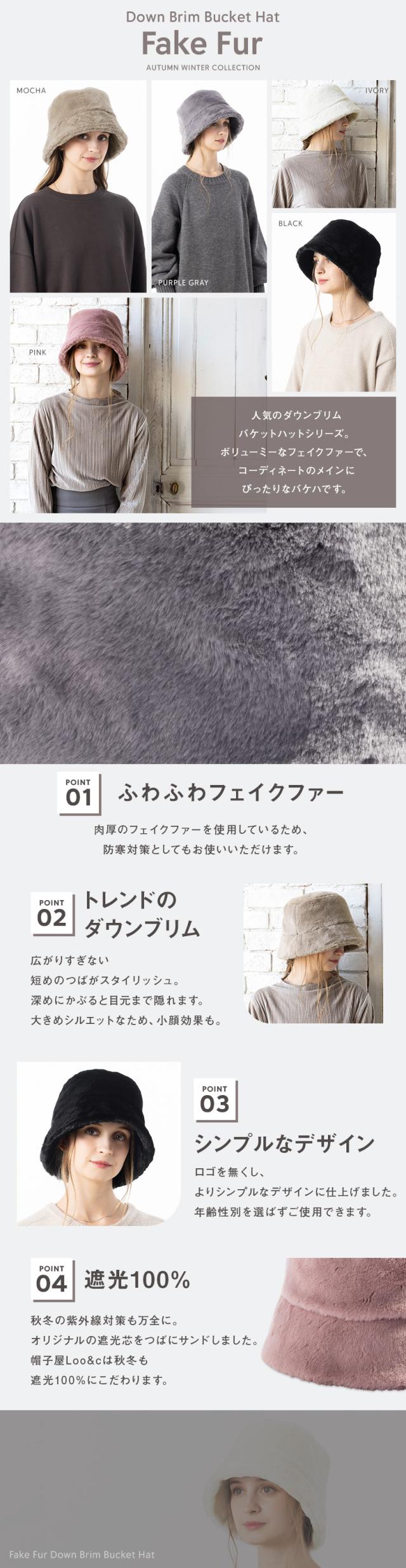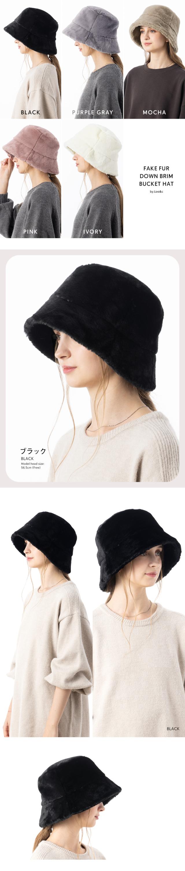 フェイクファーダウンブリムバケットハット(209-c)帽子 レディース 大きいサイズ 防寒 秋 冬 秋冬 完全遮光 遮光100% つば部分 UVカット バケットハット