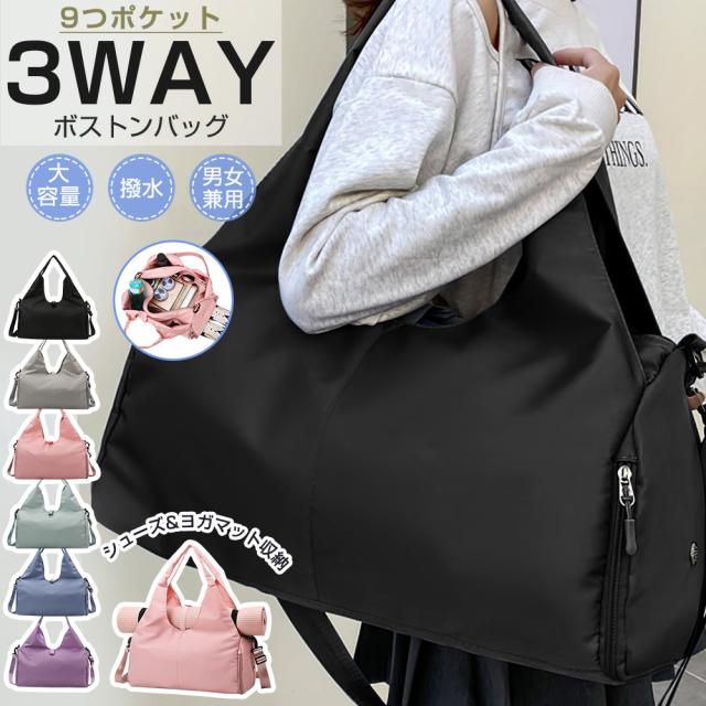 ボストンバッグ 旅行バッグ カバン 9つポケット 3WAY 大容量 ヨガマット収納可 キャリーオンバッグ スポーツバッグ キャリーバッグ 乾湿分離 シューズ収納