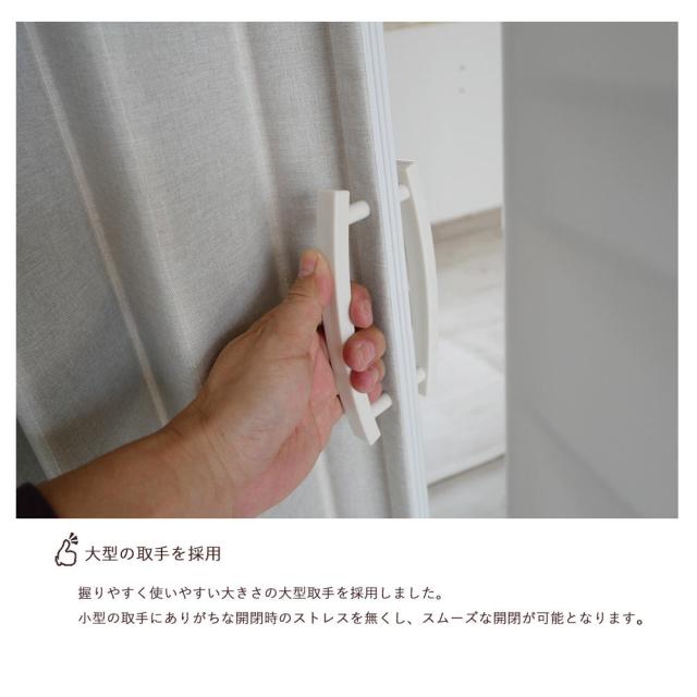 ・ファブリックなので、柔らかく、温かみのあるアコーディオンドアです。