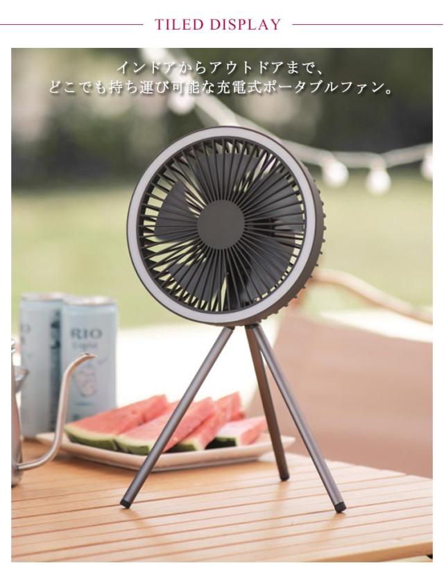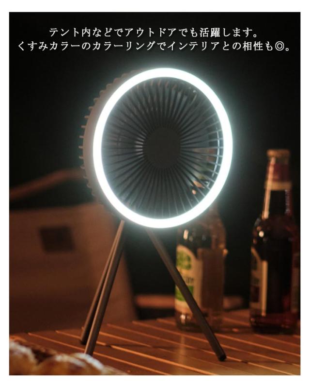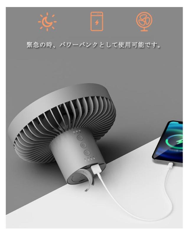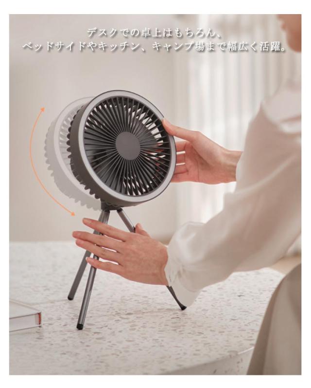 | 【大容量!!リチウムイオン蓄電池4000mAh】 インドアからアウトドアまで、どこでも持ち運び可能な充電式ポータブルファン。 デスクでの卓上はもちろん、ベッドサイドやキッチン、キャンプ場まで幅広く活躍。 コンパクトながらリズム風を含めた3段回の風量調整、定時1h/3h/5hの時間調整が可能です。 また三脚を取り外して卓上ファンとしても使えます。ハンガーループ付きでフックなどに吊り下げることも出来るから、 テント内などでアウトドアでも活躍します。くすみカラーのカラーリングでインテリアとの相性も◎。 緊急の時、パワーバンクとして使用可能です。 | |