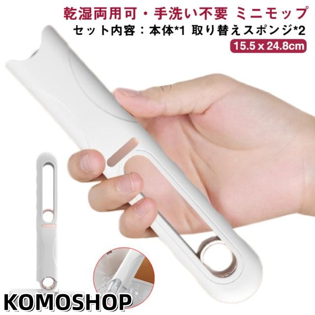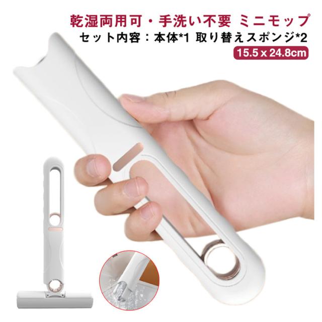 | 乾湿両用可・手洗い不要 ミニモップ【セット内容:本体*1 取り替えスポンジ*2】 軽量設計、掃除が簡単、狭いスペースでも使いやすく、非常に便利 スペースを取らずに吊るすことができ、コットンヘッドは取り外し可能で交換可能で、長期間の繰り返し使用 吸水性が強く、汚れや水垢を効果的に取り除き、素早く拭いて乾かすことができ、回転調整は取り付けが簡単 | |