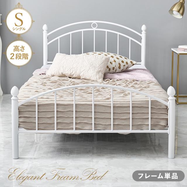 シングルベッド パイプベッド フレームのみ Sベッド 高さ調整2段階 スチール エレガント フェミニン 可愛い ホワイト マットレス別売