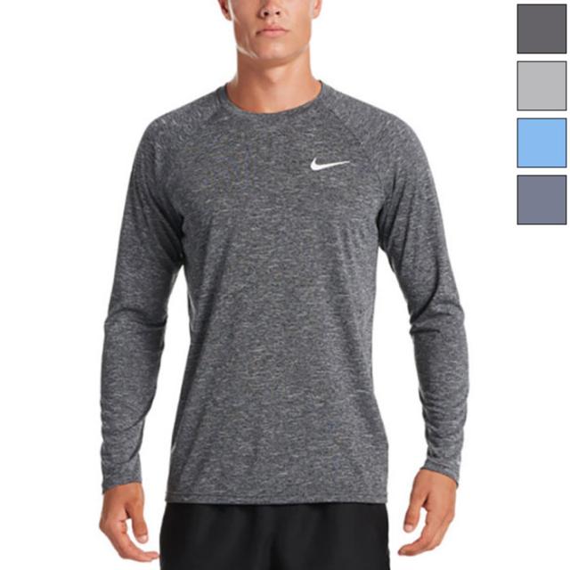 ナイキ メンズ ヘザー ロングスリーブ ハイドロガード スイムウエア スイミング 水泳 ラッシュガード 長袖 ブラック 黒 グレー ネイビー ブルー 青 灰色 送料無料 NIKE NESSA590