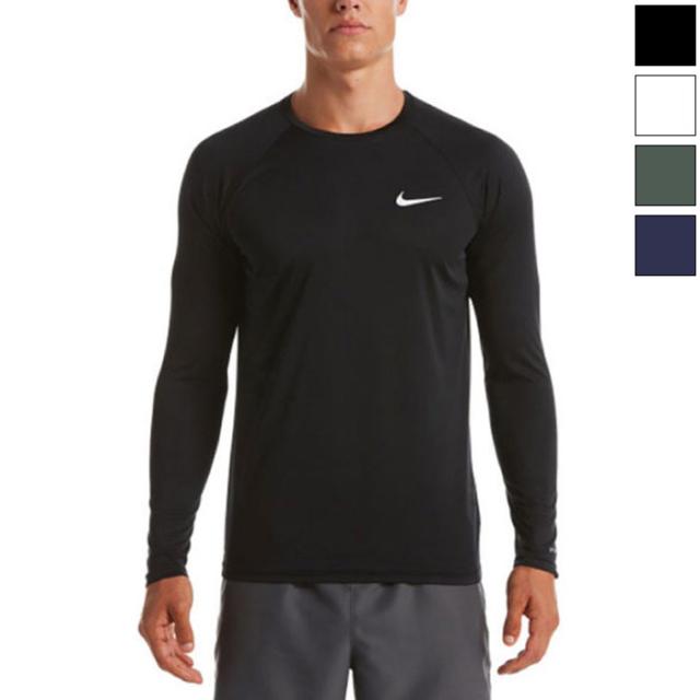 ナイキ メンズ エッセンシャル ロングスリーブ ハイドロガード スイムウエア スイミング 水泳 ラッシュガード 長袖 ホワイト 白 ブラック 黒 ネイビー カーキ 送料無料 NIKE NESSA587