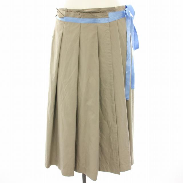 【中古】ロイスクレヨン ラップスカート 巻きスカート プリーツスカート ひざ丈 リボン M グレージュ 11001838