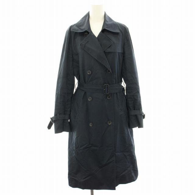 【中古】23区 オンワード樫山 コットンエステルギャバジントレンチコート スプリングコート ロング 38 紺 ネイビー