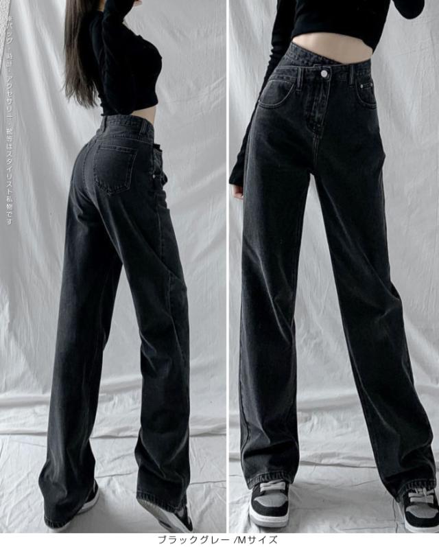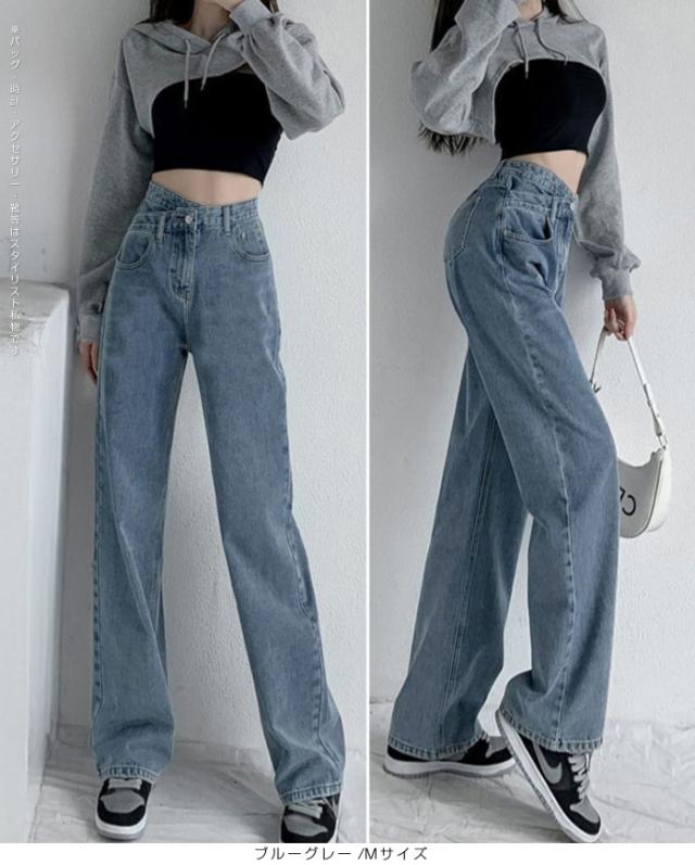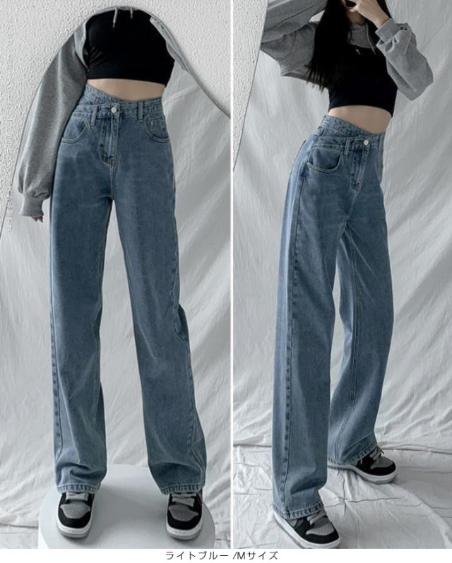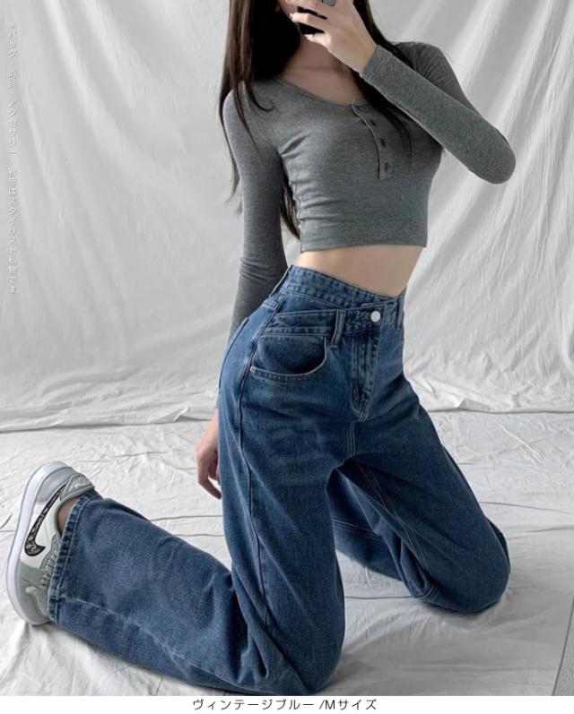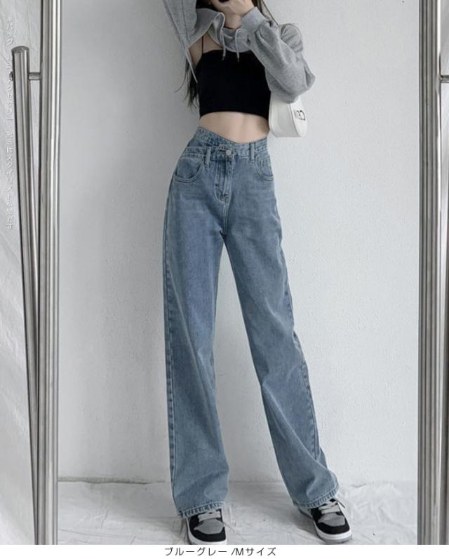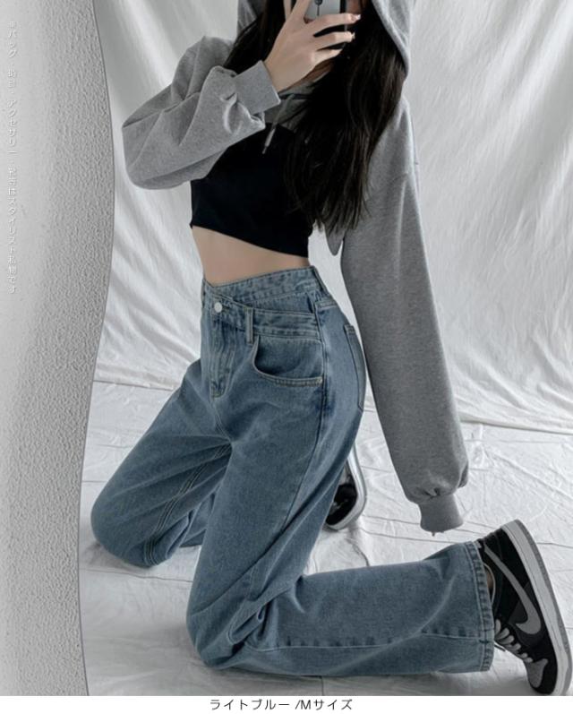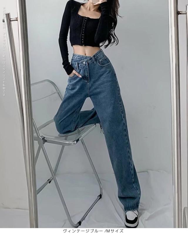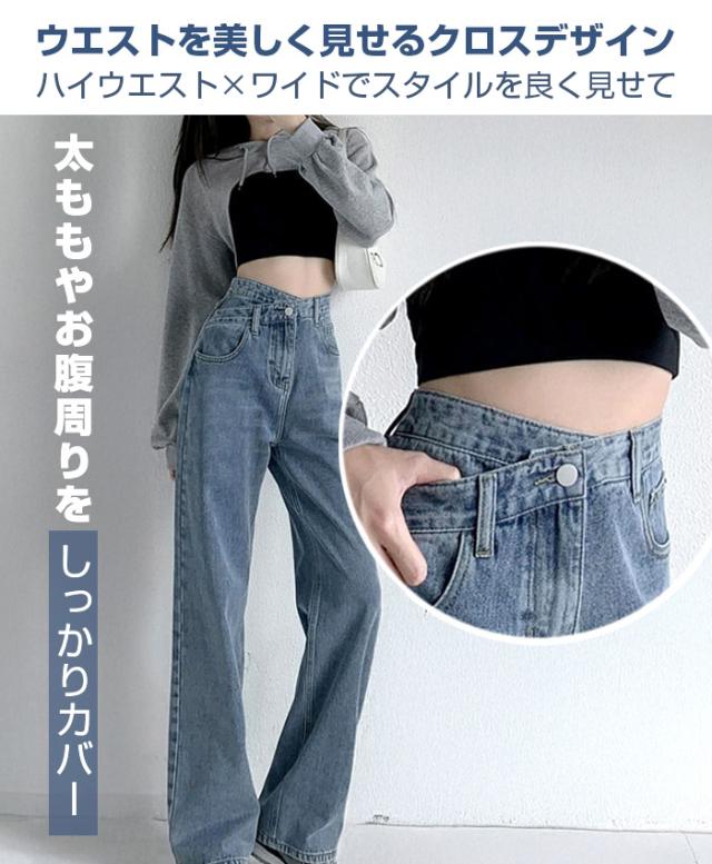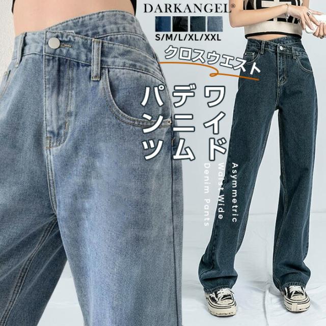 20%OFFクーポン!パンツ ワイトパンツ デニムパンツ デニムワイトパンツ クロスウエストデニムパンツ レディース 体型カバー ハイウエスト ゆったりシルエット ウエスト細見え ボトムス 【クロスウエストワイドデニムパンツ】 ダークエンジェル 秋新作
