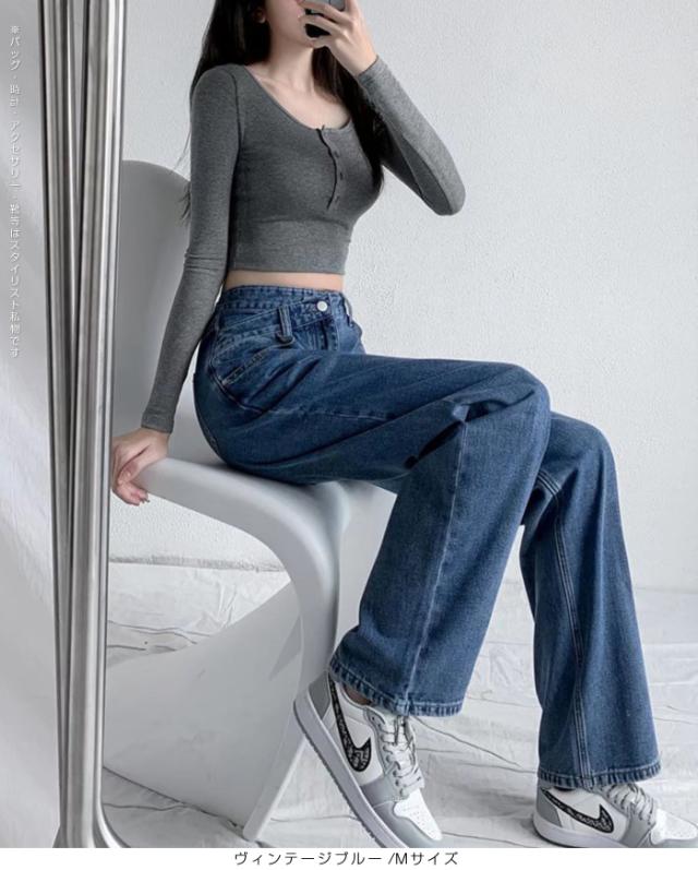 【クロスウエストワイドデニムパンツ】 ウエスト部分のクロスデザインが目を引く、 今っぽさ満点のワイドデニム。 ハイウエスト×ゆったりストレートシルエットで、 スタイルを良く見せても体型カバーもばっちり。 綿混素材で履き心地も◎。 デイリー使いはもちろん、 ちょっとしたお出かけにもぴったり。 |