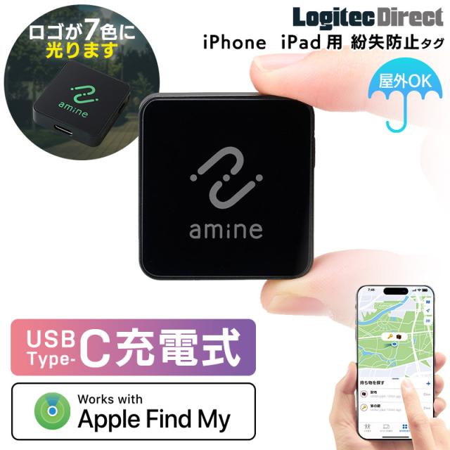 スマートタグ 紛失防止タグ USB Type-C 充電式 iPhone iPad 用 amine 忘れ物 位置確認 追跡 探し物 iOS スマホ LGT-LWUCTG1BKA new