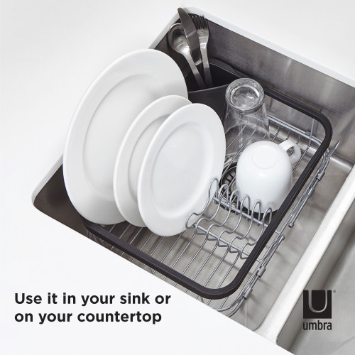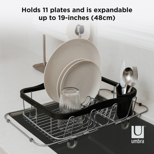 umbra アンブラ 水切りラック シンク内 シンク上 シンク横 シンキン 3幅ay ディッシュラック 傷防止 脚ゴム付き ブラック 北欧 おしゃれ 幅36.5cm 奥行28.5cm 高さ13.9cm 伸縮フレーム最大幅約48.5cm(代引不可)【送料無料】