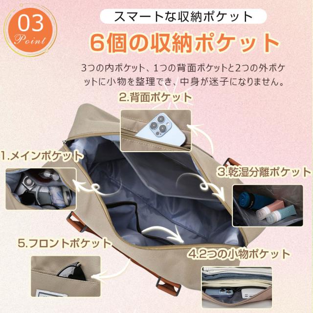 ボストンバッグ レディース メンズ 6つポケット 3WAY 旅行バッグ カバン 大容量40L キャリーオンバッグ スポーツバッグ 乾湿分離 機内持ち込み 撥水 1泊 2泊