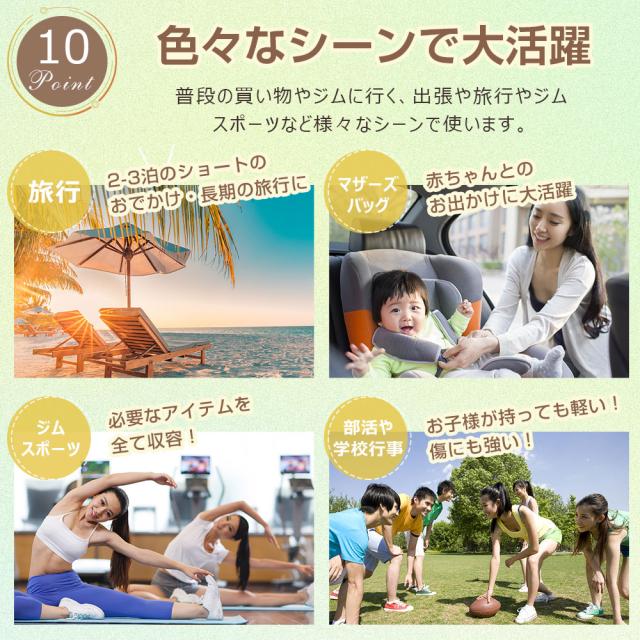 | 【機能性抜群!たっぷり入る6つのポケットの収納】 2〜3泊の旅行に最適な大容量40Lサイズです!メイン収納の他に、フロントポケット、裏ファスナーポケット、内側防水ポケットがあり、荷物を分けて収納できます。 着替えやスパバッグ、旅行用コスメ、事務用品や、書類、15.6インチのパソコンがまとめて入り、さらに外出先で荷物が増えても安心のサイズ感。 どこに何を収納しているか迷うことがなく、バッグの中がいつでも整理整頓。 【大容量でいっぱい入る安心感】 旅行の帰りにお土産を買って荷物が増えた時でも余裕でバックの中に収納する事ができます。 機内持ち込みサイズになっているので、バッグ1つで旅行する方にもおすすめ。 【スタイルに合わせて使える3WAYタイプ】 手持ち、ショルダー、キャリーオンバッグとして3WAYで使えます。 キャリーオンの際に便利なキャリーオンループが付いているのでスーツケースにしっかりと固定され、移動の際にズレ落ちる心配がなくストレスなく移動ができます。 【雨にも傷にも負けない丈夫な素材】 耐久性が高く、撥水加工の施されたオックスフォード布の生地を採用しているので急な雨でも中の荷物が安心。 傷もつきにくく、シワもできにくい。汚れた場合は水で手洗いが可能です。 さらに、傷につよい強度のある素材で防犯性もバッチリです。ハンドル部分には精密裁縫を施し、重さにも耐久性のある設計に。さっと開閉できる滑りの良いファスナーも搭載しました。 ※ご注意:洗濯機の使用は不可ので、予めご了承ください。 【驚きの軽さで持ち運びラクラク】 ボストンバッグ本体の重量はたった500g!大容量なのに超軽量なので持ち運びの負担を軽減し、子供でも楽々持ち運びできる重さ。 バッグを使わない時は、コンパクトに折りたためるので場所も取りません。スーツケースに入れておけば旅行のサブバッグとしてもおすすめです! 【男女問わずシンプルで洗練されたデザイン】 シンプルなデザインで男女問わず、子供から大人まで家族みんなで使えるバッグ。 普段使いやジムバッグやヨガバッグ、プールバッグ、スポーツバッグ、旅行バッグ、トラベルバッグ、防災バッグ、お買い物バッグ、お土産バッグ、旅行カバンに。 合宿やキャンプ、フィッシングなどのアウトドア活動・ジムやゴルフ、ヨガなどスポーツに大活躍するだけでなく、修学旅行、遠足、出張、緊急災害用等々幅広く活躍する。トレーニングなどの習い事の際まで様々なシーンで活躍できます。 ※商品のサイズや重量は裁断、縫製によって個体差がある場合がございます。また、平置きによる手作業での測定のため、多少の誤差が生じる場合がございます。予めご了承ください。 ※撮影の為、画質等の関係上、色などが実際の商品と若干違ってしまうこともあるかもしれませんがご理解のほどご購入ください。 |