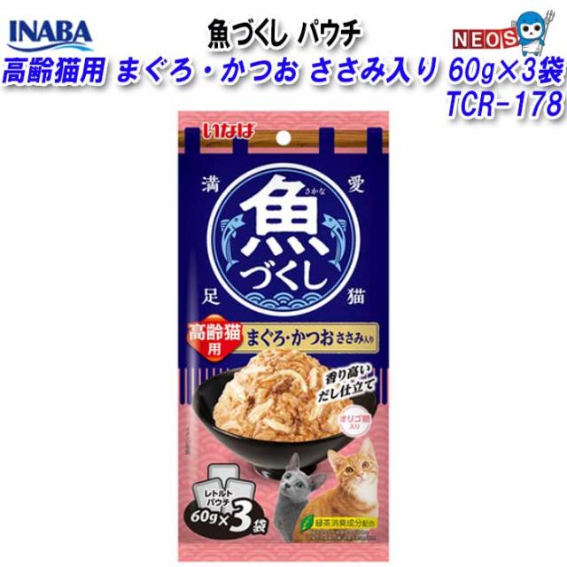 いなばペットフード 魚づくし パウチ 高齢猫用 まぐろ・かつお ささみ入り 60g×3袋 TCR-178