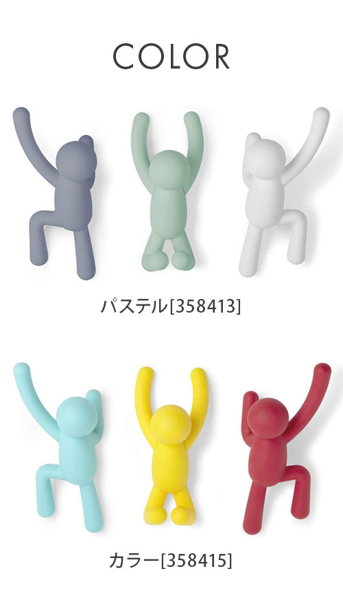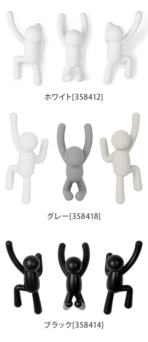 umbra アンブラ フック 3個入り バディ 壁 おしゃれ かわいい ホワイト ブラック パステル グレー カラー 北欧 幅7.6cm 奥行7.6cm 高さ16.5cm(代引不可)