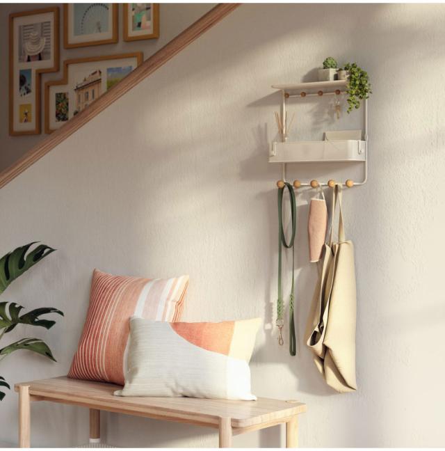 ・独創的でモダンなデザインの玄関ウォールシェルフです。