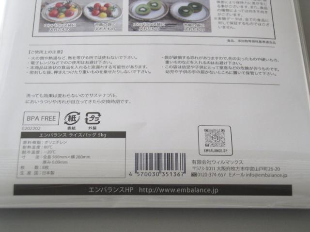 EMBALANCE エンバランス 保存袋 5kg ライスバッグ 8枚入 お米保存袋 日本製 保存袋 フリーザーバッグ 保存バッグ お米 備蓄米 野菜 フルーツ 野菜用保存袋 鮮度保持袋 丈夫 破れにくい(代引不可)