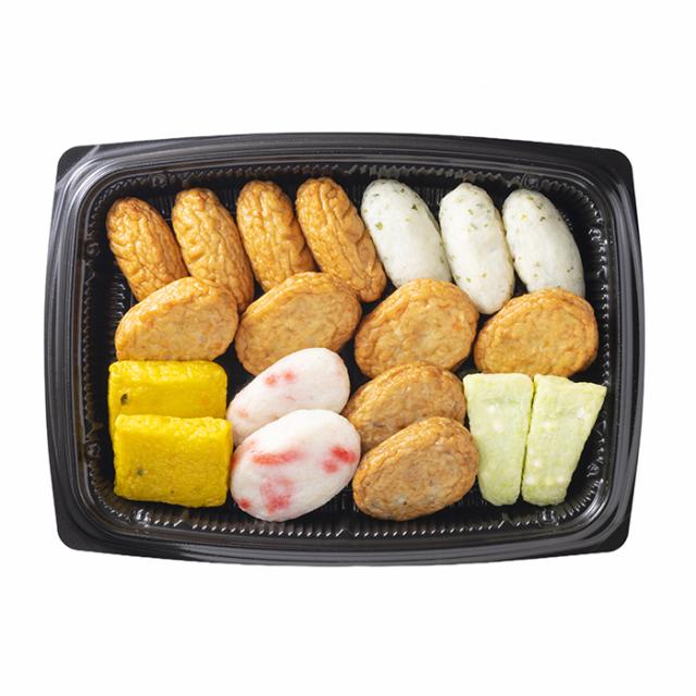 魚肉をブレンドし旨みを引き出し、ソフトな食感には豆腐と山芋、風味豊かな甘みに欠かせない灰持酒を使用。小田口屋独自の製造法で練り物に相性の良い色鮮やかな種ものを用い、バラエティ豊かに仕上げました。