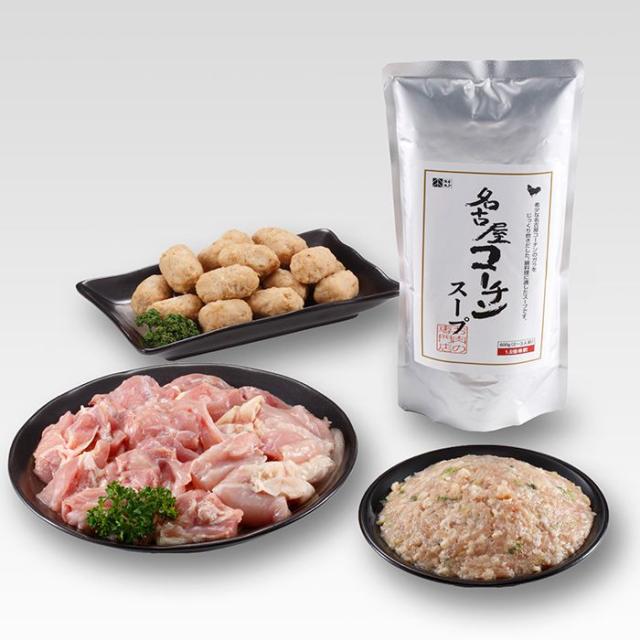 名古屋コーチン切身200g、名古屋コーチン入りつくね200g、名古屋コーチンつみれ200g、名古屋コーチンスープ600g