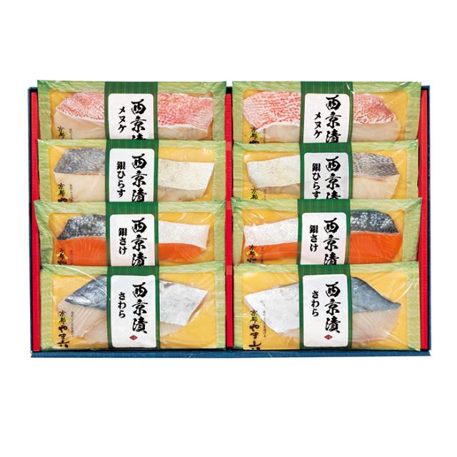 京都やま六 西京漬詰合せ[8切] さわら西京漬60g・銀さけ西京漬65g・銀ひらす西京漬70g・メヌケ西京漬70g×各2切 【送料無料】