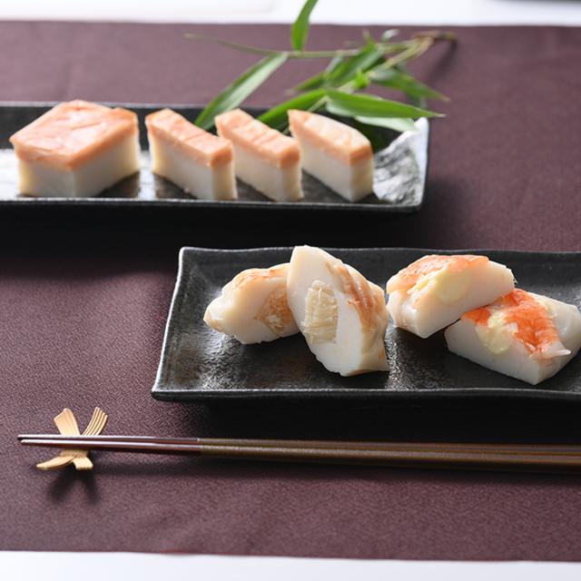 ほたて貝をかたどったかまぼこの中にオホーツク産の帆立貝柱がまるごと1個入った「ほたて」。2尾のえびがのった「えび」の中にはチーズが。鮭フレークをふんだんに使って表面を香ばしく焼き上げた「鮭」は、少し厚めにスライスして、わさび醤油やマヨネーズでどうぞ。大きめサイズで食べごたえ十分な3種の詰合せです。
