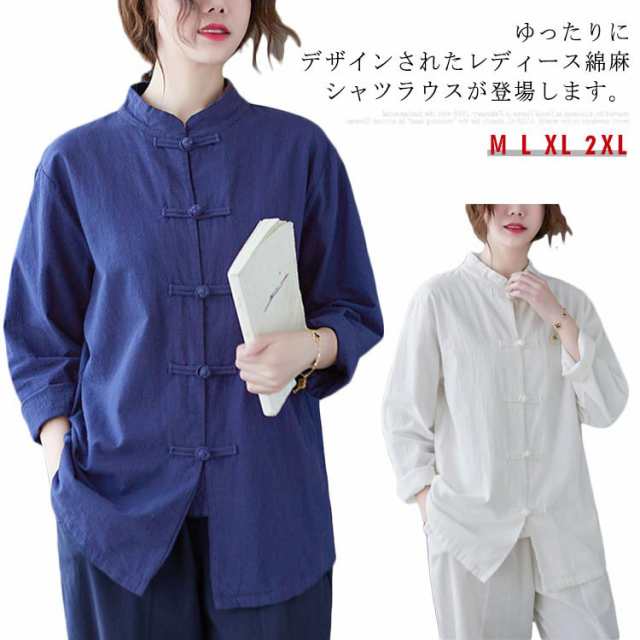 リネンシャツ 立ち襟 長袖シャツ チャイナ風シャツ レディース 長袖 綿麻 チャイナボタン チャイナ服 トップス ブラウス カジュアル カーディガン 無地 大きいサイズ 春物 かわいい 新作