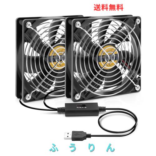 Mauknci USBファン 12cm 2台1組 2連USBファン 静音 5V 3段階風量調整 PS4など用 冷却ファン ブラック