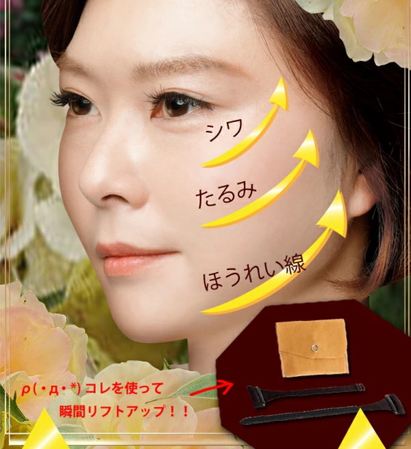 物理的にリフトアップ!簡単装着リフトアップバンド!目の下や、頬のタルミ、ほうれい線がなくなるとフェイスラインがスッキリ。引き上げたいところの髪をピンで固定してテープで位置を調整するだけ。髪に隠れて目立たないデザインだから誰にも気づかれずにリフトアップできます。髪をしっかりホールドする形状のピンを使用しているからずれにくい。テープ部分は、フィット感の良いソフトな素材を使用。付けているのを忘れてしまいそうな軽さです。