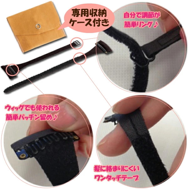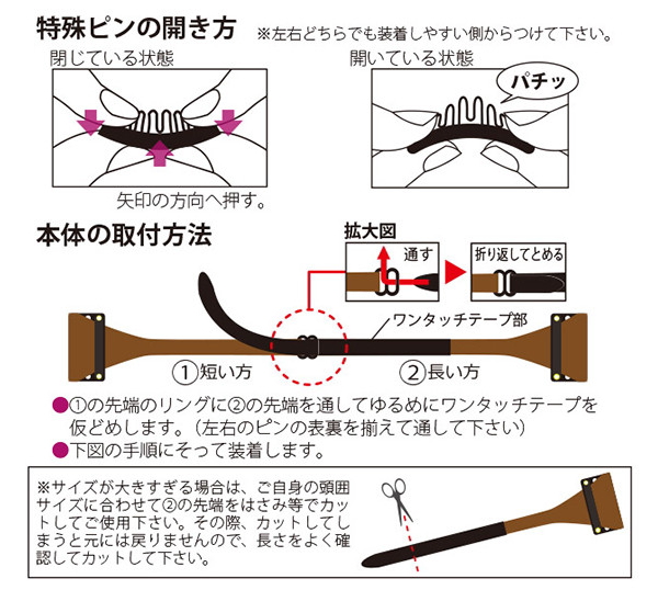 【適応サイズ】耳上から耳上まわり:約26〜32cm【カラー】ダークブラウン【材質】■本体:合成皮革■ワンタッチテープ部分:ナイロン■ピン部分:スチール/シリコン系樹脂■リング部分:ポリアセタール■携帯袋:ポリエステル/レーヨン/綿【付属品】専用収納ケース【生産国】中国製(企画デザイン:日本)【販売元】株式会社メイダイ