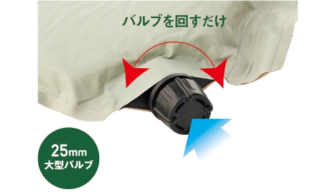 本体の角にあるバルブを開くだけで、自動的に空気が入ります。