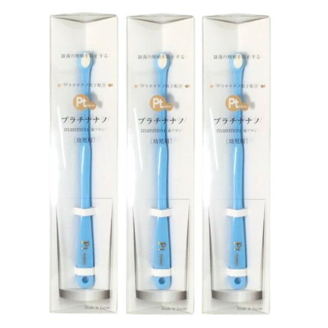 バイオエポック プラチナナノ manmou 歯ブラシ 幼児用 ブルー 3本セット[ 歯磨き マンモウ 極細毛 日本製 ナノ 抗菌 防臭 歯茎 マッサージ 超柔らか 超密集毛束 万毛 万毛歯ブラシ プラチナナノ歯ブラシ 幼児 子供 セット ]