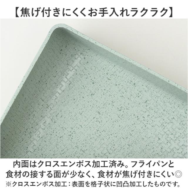 | 商品説明 | 【卵料理や少量の調理に大活躍♪】 ・キレイに巻けて、スルッと落ちる!kukunaヒスイ&ダイヤモンドコーディング エッグパン 【ヒスイ&ダイヤモンドのWストーン】 ・2つの石を混ぜ合わせ、より固く強いコーティングに。キズに強く耐久性の高い9層構造! (※1)フライパンの素地(アルミ)に、内面と外面4層ずつコーティングを施しております。 【焦げ付きにくくお手入れラクラク】 ・内面はクロスエンボス加工済み。フライパンと食材の接する面が少なく、食材が焦げ付きにくい◎ (※2)クロスエンボス加工:表面を格子状に凹凸加工したものです。 【簡単エコ&ヘルシー調理】 ・Wの遠赤効果でエコクッキング♪食材がひっつきにくく少量の油でOK&余分な油もカット♪ (※3)凹部分に余分な油が落ちる構造です。 【サッと洗い流せて長く使える!】 ・外面もWストーンセラミックコーティングで汚れが落ちやすい!長く愛用できるアイテム。 【デイリーに使える安心・安全設計】 ・調理がしやすい軽くて頑丈な作り。環境ホルモンを含まない、人体に無害なPFOA FREE◎ 【ガス火もIHにも対応】 ・便利なIH対応で、合計5つの熱源に対応。引っ越し時の買い替えが不要なのもポイント。 (※4)機種により使用できない場合がございます。 【熱に強くコーティングも長持ち】 ・耐熱性が高く、ロングライフを実現◎コーティングはがれの原因となる傷や熱にも強い! 【美しいライトグリーンカラー】 ・キッチンがより楽しく明るい空間になる!ナチュラルなカラーリングも魅力。 【kukuna-ククナ-】 ・ハワイ語で差し込む太陽の光、木漏れ日という意味。差し込む太陽のように心に安らぎを。 |