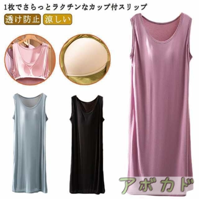 キャミワンピース カップ付き ブラ キャミソール スリップ Uネック インナー ランジェリー ノンワイヤー キャミワンピ ロング 涼しい カップ付き 袖なし ワンピの下 下着 肌着 透け防止 下着透け対策