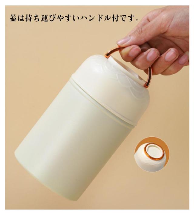 | ・保温も保冷もできるステンレス製真空断熱容器のスープジャーです。 ・温かいスープも冷たいサラダも、料理にあわせた温度で持ち運べます。 ・蓋部分に収納できるスプーン付きです。 ・ごろごろ食材も入れやすい広口設計。朝の準備もスムーズ。 ・容量はたっぷり入る500mlで、しっかり食べたい方や具材の多いスープにおすすめです。 ・蓋は持ち運びやすいハンドル付です。 | |