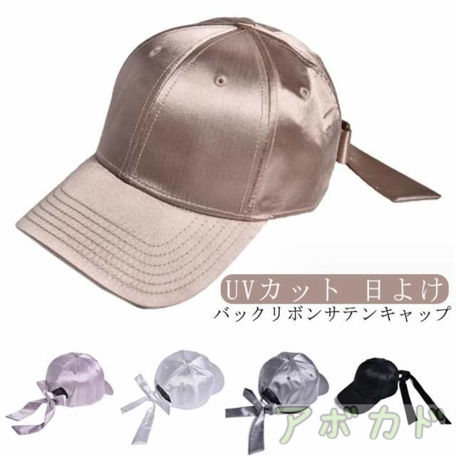 日よけ バックリボン サテン UVカット レディース 艶あり 後ろリボン バックリボン リボンキャップ キャップ 日焼け防止 帽子 スポーツ 可愛い おしゃれ 誕生日 プレゼント