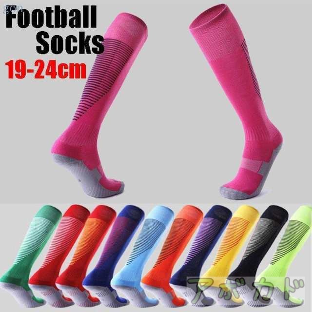 新デザインのサッカーソックスが入荷しました。かっこいいデザインでお友達とかぶる事もないはず!デザインだけではなく、機能性もアップ!足底は靴の中で滑りにくくする為、独自の縫い処理を行い、生地も厚めになっております。足首部分は脱げにくく、ずれにくいようにすこし絞った設計。ですが、伸縮性にすぐれた生地で締め付け感は感じません。ハイソックススタイルで膝のケガ防止に役立ちます。 サッカーソックスは洗い替えや予備として何足も必要。消耗品なので、できるだけ安く買いたい。そんな方に赤字覚悟の大特価!しかも!練習用はもちろん、試合でも使えます。サッカーだけではなく、スポーツ用ハイソックスとしても!ブラック ブルー グリーン ピンク レッド イエロー ネイビー