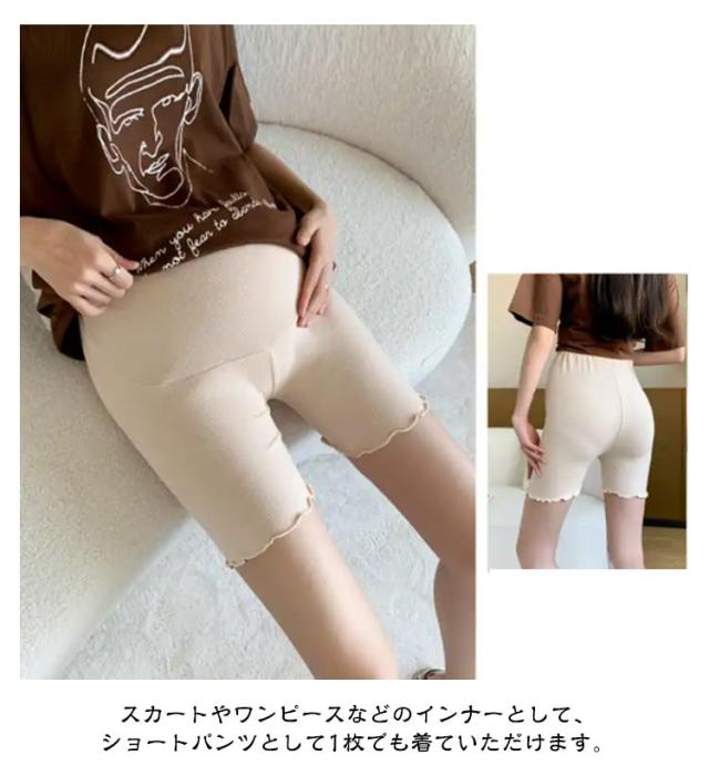 サラサラ 臨月 フリル 涼しい ひんやり 3分丈 レディース レギンス ショートパンツ スパッツ マタニティ 涼感 透け防止 レーヨン 夏用 薄手 ストレッチ 肌着 下着 産前 産後 ペチパンツ アジャスター付き 妊婦用