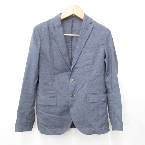 【中古】ユニオンステーション メンズビギ ジャケット テーラージャケット シングル ベンツ 麻混 紺 S メンズ
