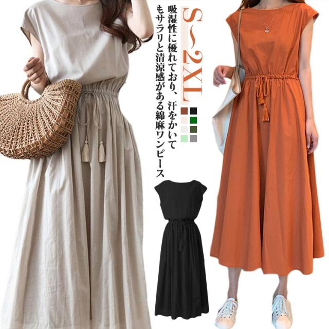 ロングワンピース ワンピース 綿麻ワンピース マキシ ロングワンピ マキシワンピ マキシワンピース レディース 夏服 ワンピース 半袖 ワンピ ロング丈 体型カバー 無地 シンプル ナチュラル 綿麻 薄手 体型カバー