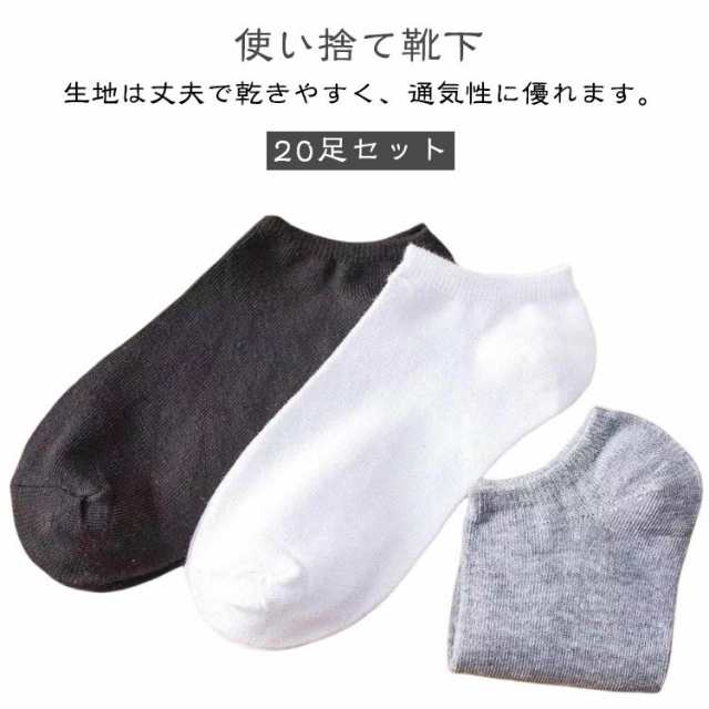 旅行 男女兼用 出張 夏 ソックス 靴下 必需品 冬 ローソックス 薄手 クルーソックス オールシーズン 春 秋 消臭 消臭靴下 四季対応 【20足セット】使い捨て フットカバー 臭わない メンズ レディース ソックス 黒 白