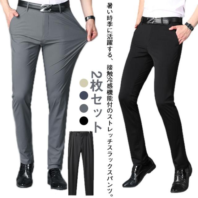 伸縮抜群 超伸縮 アイスシルクパンツ ゴルフパンツ メンズ 接触冷感 ビジネスパンツ 冷感パンツ ボトムス 涼しい ひんやり ストレッチ 2枚セット 薄手 スラックス ズボン 吸水速乾 スラックス 2枚セット ゴルフウェア 涼感 大きいサイズ 春夏 無地 父の日 ギフト