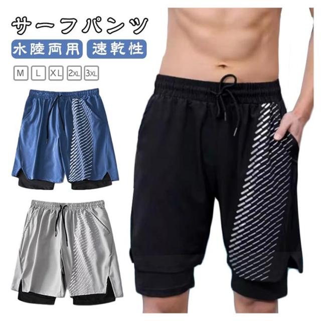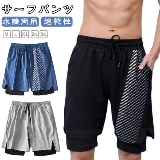 夏 水着 サーフパンツ インナー付き メンズ 水陸両用 ボードショーツ 海パン ウエストゴム 水着 トランクス 薄手 ひざ丈 ポケット 膝丈 ひも付き 裏地付き ボタニカル プール 海水浴 旅行 リゾート スポーツ