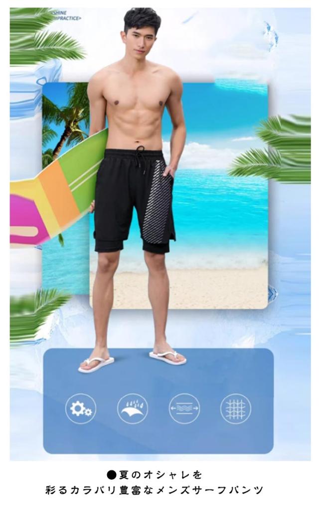 | ●速乾性に優れた水陸両用、カラーバリエーション豊富なショート丈パンツ ●夏のオシャレを彩るカラバリ豊富なメンズサーフパンツ ●お持ちの水着にも合わせやすいシンプルなデザイン ●体型もカバーしてくれます、ジムやスポーツ、レジャーに ●速乾性、ビーチやプールで濡れた後も乾きやすく、耐塩素でプールでも安心、夏場でも快適な着心地です。 | |