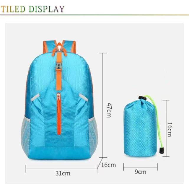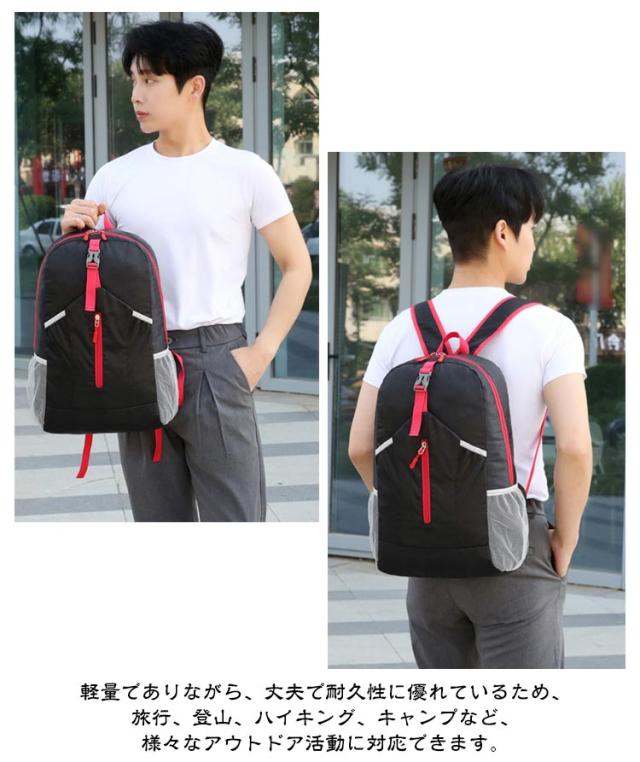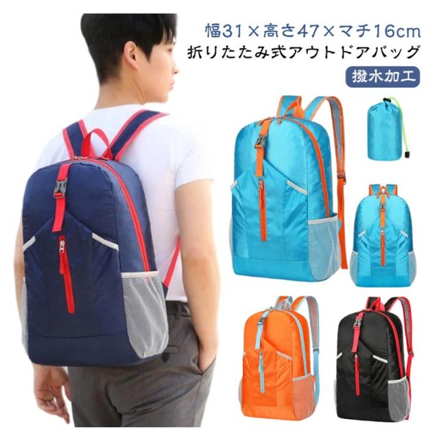 | 【折りたたみ式アウトドアバッグ】【幅31×高さ47×マチ16cm】【撥水加工】 旅行や登山、キャンプに最適な大容量のバックパックです。 撥水加工素材を使用しており、急な雨や湿気から荷物を守ります。 使わない時にはコンパクトに折りたたんで収納可能。 収納スペースが限られている時でも便利に持ち運べます。 通気性の良い素材で、長時間背負っても蒸れにくく、肩や背中への負担を軽減してくれます。 軽量でありながら、丈夫で耐久性に優れているため、旅行、登山、ハイキング、キャンプなど、様々なアウトドア活動に対応できます。 | |