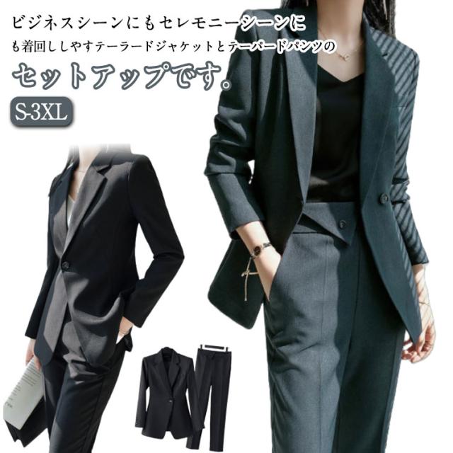 セレモニースーツ パンツ 50代 パンツスーツ 卒業式 レディース ママスーツ 入学式 テーパードパンツ 入園式 卒園式 40代 テーラードジャケット 大きいサイズ セレモニースーツ 母 30代 おしゃれ ママ フォーマルスーツ ビジネススーツ スッキリ 黒